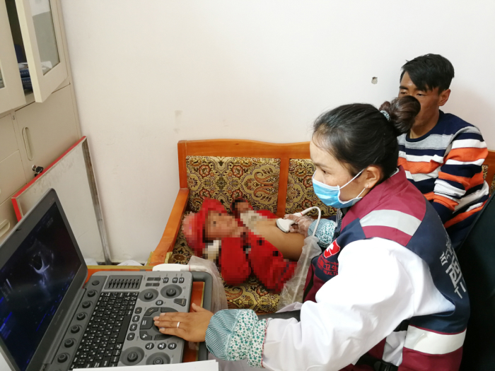 旺姆(化名),三歲,是同爸爸媽媽一起來的篩查中心,旺姆有一雙大大的眼睛,聲音非常甜美,看我在照相,害羞地往媽媽的背后躲,又好奇地探出小腦袋,非??蓯?,爸爸媽媽體檢時她安靜地站在旁邊看,不哭不鬧,是個安靜的小寶寶,輪到小旺姆體檢時,爸爸把她放在床上,格桑拉吉讓她躺下,小旺姆乖乖地躺好任由探頭在她的小肚子上劃來劃去。突然格桑拉吉臉色沉重,從衣服包里掏出手機(jī),開始拍B超機(jī)屏幕,我心里一緊,悄悄問她,她只是點(diǎn)頭,三歲的旺姆(化名)被診斷為疑似病例。