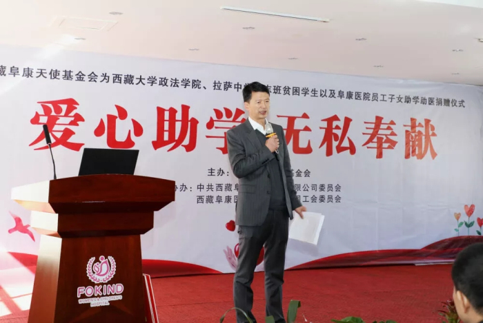 拉薩中學(xué)校長陳飛,向西藏阜康天使基金會表示了衷心的感謝。他表示:阜康是西藏民營醫(yī)療行業(yè)的典范,王斌董事長在發(fā)展事業(yè)的同時,從未忘記回饋社會,成立阜康天使基金會,慷慨解囊,幫助西藏教育事業(yè)的發(fā)展,切實體現(xiàn)了“仁心仁術(shù),止于至善”的阜康企業(yè)文化精神。