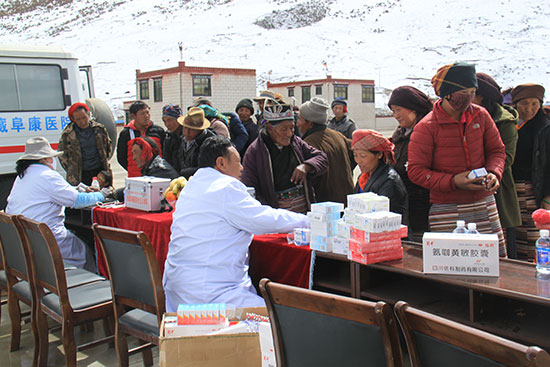 墨竹工卡縣斯布村地處偏遠(yuǎn),就醫(yī)不便,村民們看病相當(dāng)困難。西藏阜康醫(yī)院醫(yī)療義診隊(duì)此次來到斯布村,共為100多名村民診療并提供咨詢服務(wù),免費(fèi)發(fā)放價(jià)值2萬多元的藥品,并為當(dāng)?shù)卮逦瘯l(wèi)生室留下了一些常規(guī)藥品,也暫時緩解了當(dāng)?shù)匦l(wèi)生室缺藥的窘境。此次義診活動非常成功,義診隊(duì)員專業(yè)的診療技術(shù),熱情的診療服務(wù)深受廣大群眾的好評。