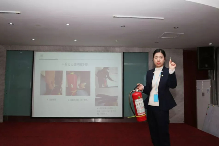 后勤保障部主任馬磊為大家講解安全消防知識(shí),并演示了消防逃生面具的使用方法