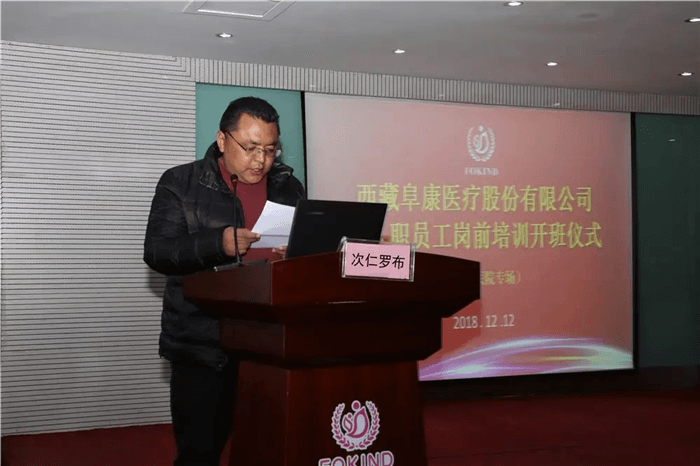 西藏玉拓醫(yī)療健康養(yǎng)老產(chǎn)業(yè)有限責(zé)任公司總經(jīng)理次仁羅布為本次培訓(xùn)活動(dòng)致辭:“西藏阜康康復(fù)醫(yī)院是一家康復(fù)??漆t(yī)院,也是‘玉拓醫(yī)療’和‘阜康醫(yī)療’聯(lián)合創(chuàng)辦的醫(yī)院,我相信我們兩家公司一定會精誠合作,將康復(fù)醫(yī)院發(fā)展成為技術(shù)一流、服務(wù)一流的現(xiàn)代化醫(yī)院!”