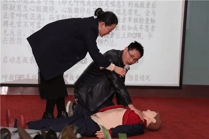 其中“消防知識”和“心肺復(fù)蘇:BLS”等課程的授課講師不但進(jìn)行了理論知識的講解,而且?guī)ьI(lǐng)各位學(xué)員進(jìn)行了實(shí)踐演練。