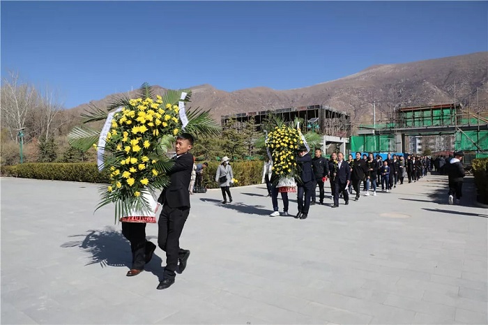 儀式結(jié)束以后,全體黨員整齊肅穆地走過紀念碑,懷著對革命先烈的崇敬之情瞻仰了烈士陵墓,同時聽取引導(dǎo)人員關(guān)于革命烈士的事跡介紹。在烈士英名墻下,大家仔細瀏覽烈士的名字;在領(lǐng)導(dǎo)干部的楷??追鄙镜哪贡埃蠹疑钌罹瞎磉_對革命先烈的崇敬與追思;面對一排排長眠的革命烈士,大家深切感受黨的事業(yè)所經(jīng)歷的艱辛與付出的巨大犧牲,深深思考作為一名新時代的中國共產(chǎn)黨員應(yīng)該如何肩負起歷史賦予的使命,在黨中央和區(qū)黨委的堅強領(lǐng)導(dǎo)下,為西藏的穩(wěn)定發(fā)展、為中華民族的偉大復(fù)興貢獻自己的力量,堅決做一名無愧于黨和人民、無愧于時代的合格共產(chǎn)黨員。