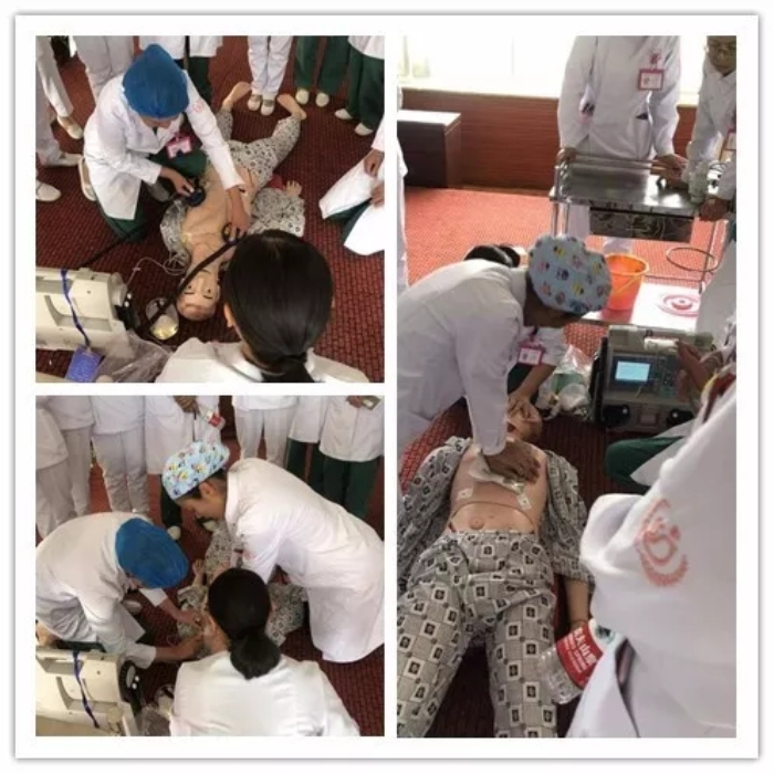 護理部主任王青青、兒科周玲護士長及產(chǎn)科二病區(qū)代理護士長李艷三人配合進行了心肺復(fù)蘇除顫操作技術(shù)。本次講課內(nèi)容豐富并貼近實際工作,老師現(xiàn)場操作演示護理技術(shù),護理人員積極互動,各科室分別派出三人進行了實操演練,在老師的指導(dǎo)下熟悉了流程并掌握了重點步驟。