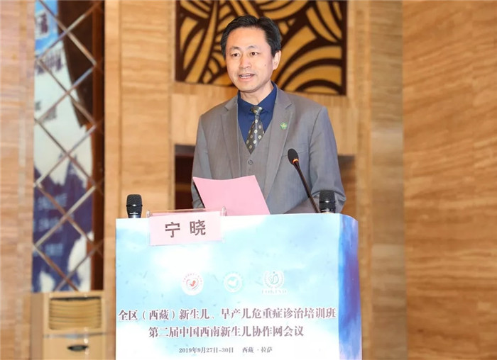 西藏阜康醫(yī)療股份有限公司總裁、西藏阜康醫(yī)院院長寧曉代表承辦方對中華醫(yī)學會兒科分會新生兒學組、中國西南新生兒協(xié)作網、重慶醫(yī)科大學附屬兒童醫(yī)院新生兒中心和西藏醫(yī)學會兒科專委會的信任和支持表示謝意,并預祝會議取得圓滿成功;