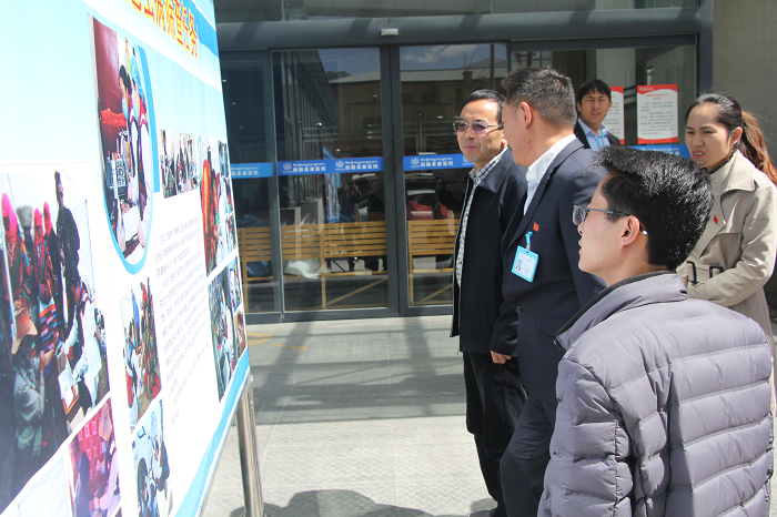 調(diào)研組領導觀看我院阿里包蟲病篩查工作匯報展覽板