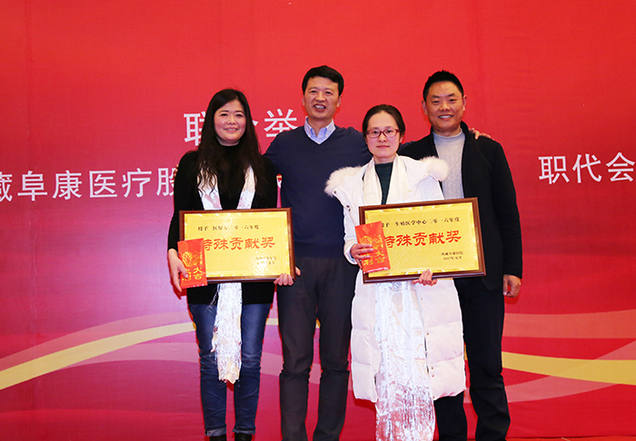 據(jù)醫(yī)院評優(yōu)選先方案,經(jīng)過民主推選和綜合考核考評,西藏阜康醫(yī)院2016年共評出10個(gè)先進(jìn)科室、47名優(yōu)秀員工、11名優(yōu)秀管理人員、3名優(yōu)秀專家、1項(xiàng)優(yōu)秀論文獎(jiǎng),1項(xiàng)個(gè)人榮譽(yù)獎(jiǎng),2項(xiàng)特殊貢獻(xiàn)獎(jiǎng)。