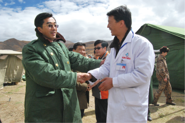“早到一秒鐘就能多救一條人命”阜康醫(yī)院的董事長王斌自從知道地震了就在辦公室里坐不住了。“快去打聽地震位置和災情!”,“通知急診科準備藥品和急救器械。”,“給司機打電話,去檢查越野車和救護車,隨時待命”。他的秘書被他使得團團轉。’下午6點多,終于確定了地震震中的確切位置并且知道了有小部分人員傷亡的情況,自治區(qū)紅十字會和阜康醫(yī)院緊急救援隊由王斌董事長帶隊奔赴災區(qū)。途中,電視臺記者得知這一消息打電話給他,希望做一些采訪“我們知道阜康醫(yī)院曾參加過四川地震的救援工作,這次你們又在第一時間奔赴地震現(xiàn)場,希望王董事長在出發(fā)前接受一下我們的采訪。”“對不起,我們已經(jīng)走到堆龍啦,現(xiàn)在對我來說最重要的是早一點到現(xiàn)場多救幾個傷員,采訪等我們回來再說吧,你要知道,早到一秒鐘也許就能多挽救一條人.....