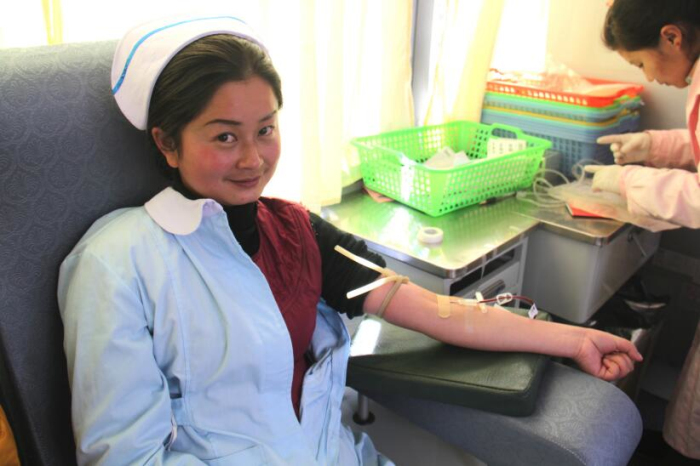 近日拉薩市血庫全線告急,血庫面臨血荒的危機(jī)。在得知這一緊急情況后王斌懂事長、劉瀟瀟總經(jīng)理立即組織阜康員工積極獻(xiàn)血,在阜康各位領(lǐng)導(dǎo)的帶領(lǐng)下,2013年1月30日他們來到阜康婦產(chǎn)兒童醫(yī)院血液中心采血點義務(wù)獻(xiàn)血。采血現(xiàn)場筆者看到在阜康婦產(chǎn)兒童醫(yī)院呂果梅副院長和拉薩大藥房何文秀店長的組織下大家排著整齊長隊等待獻(xiàn)血。筆者有幸采訪到了阜康醫(yī)院心腦血管分院內(nèi)科主任于永軍,據(jù)于主任介紹他已是多次參與獻(xiàn)血,阜康的員工都是很無私的,很多時候在面臨病人急需輸血而血站又缺血的情況下阜康員工就會自發(fā)組織在一起去血站為病人獻(xiàn)血,這種情況總是經(jīng)常出現(xiàn)。于主任告訴筆者自己獻(xiàn)血也是想起到一個帶頭的作用,很多人不愿獻(xiàn)血就是怕對身體有傷害,醫(yī)生護(hù)士積極獻(xiàn)血能告訴大家適當(dāng)獻(xiàn)血不但對身體沒有害處還有利于身體健康。