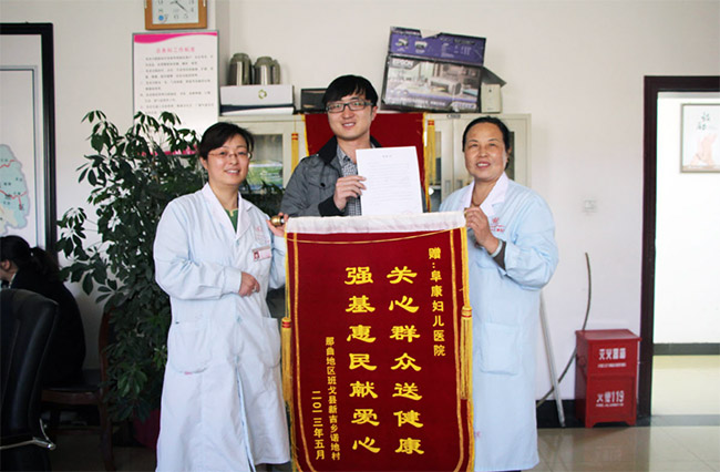 在給阜康婦產(chǎn)兒童醫(yī)院的感謝信中,新吉鄉(xiāng)人民政府對(duì)阜康婦產(chǎn)兒童醫(yī)院為新吉鄉(xiāng)衛(wèi)生院送去價(jià)值約1.5萬元的常用藥品表示感謝。并表示這是阜康醫(yī)院作為社會(huì)力量以實(shí)際行動(dòng)積極響應(yīng)自治區(qū)黨委、政府的號(hào)召,積極投入創(chuàng)先爭優(yōu)強(qiáng)基惠民活動(dòng),以送醫(yī)送藥下鄉(xiāng)為平臺(tái),關(guān)心基層干部身體健康,熱心公益事業(yè)的充分體現(xiàn)。新吉鄉(xiāng)人民政府為此表示衷心感謝,而阜康婦產(chǎn)兒童醫(yī)院卻希望在今后的日子里能給予百姓更多的支持與幫助!