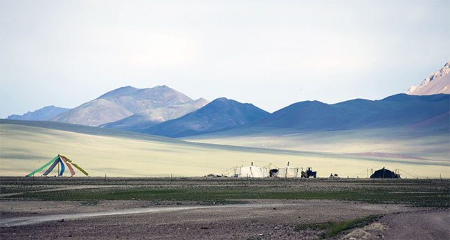 家鄉(xiāng)的9月,酷暑還沒消退,而當(dāng)我從拉薩乘車到達(dá)措勤境內(nèi)時(shí),這里卻下起了鵝毛般的大雪。車?yán)锼腥硕急凰緳C(jī)喊下了車,在雪地里推這不中用的大“鐵皮”。初次見到如此美妙的雪景,我挺激動(dòng),并沒因?yàn)樵愀獾穆窙r而苦悶。還好,雪并沒有下太久,汽車又奔馳在廣闊草原上,前方是望不盡的天際和地平線到達(dá)改則縣城,如同到達(dá)歐洲中世紀(jì)的小城。土墻,矮窗,牧民家的煙囪和那裊裊的青煙構(gòu)就著荒原中詩般的生活氣息。“大漠孤煙直,長河落日?qǐng)A”的邊塞景象真實(shí)地展現(xiàn)在眼前。當(dāng)然,改則縣長河是沒有的,在我印象里最深刻的是這三種事物:太陽、烏鴉和荒原。太陽永不懈怠,每天都從天邊升起然后落下;成群烏鴉粗劣嘶啞的叫聲給了荒原更加凄切的靜謐——呱、呱;而荒原,是太陽和烏鴉永恒的載體,不離不棄。