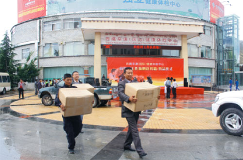 西藏阜康(國際)健康體檢中心王斌董事長首先向為促進西藏和諧發(fā)展長期駐村(居)的工作人員表示崇高的敬意!據(jù)了解,本次為拉薩市267個駐村(居)工作隊贈送的小藥箱中配備了急救類、解熱鎮(zhèn)痛類、治感冒類、止咳化痰類、抗菌藥物類等14類共31種常用藥品及電子血壓計,總價值約20萬元。王斌董事長在贈送儀式上講到“本次開展西藏阜康(國際)健康體檢中心向駐村(居)工作隊贈送藥箱活動,旨在為民解困難,為民辦實事,為我們駐村(居)工作人員健康做好堅實的后盾,促進西藏穩(wěn)定和諧發(fā)展。”王斌董事長希望能給駐村(居)工作人員帶來健康,同時也希望能在黨的群眾路線教育實踐活動中獻出民營企業(yè)的一份綿薄之力。