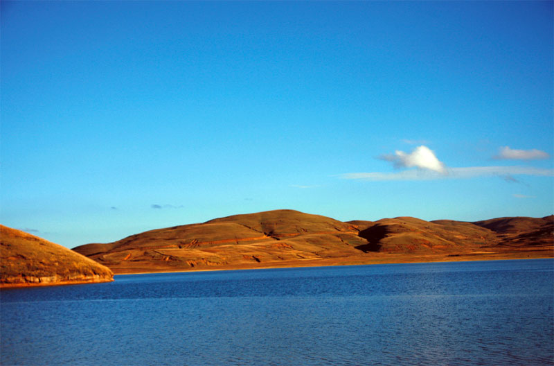 出了宜賓風(fēng)景就大不一樣,時而沿著高山峽谷在走,時而又攀升在碧綠的盤山公路。行至昭通,另一片天了,天空蔚藍(lán)蔚藍(lán),云朵開始無遮無攔,大朵大朵的掛在頭頂,而空氣也開始變得稀薄。眼前是大片大片黃褐色的山巒,樹木卻并不多,高速公路狀況極差,路兩旁的民居以平房居多,偶見一些小孩兒,三三兩兩。