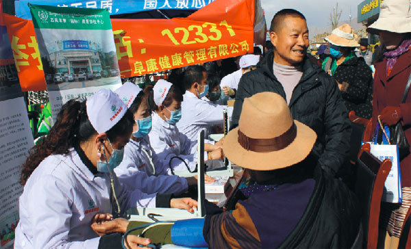 3月31日西藏阜康醫(yī)藥發(fā)展有限公司積極參加自治區(qū)食品藥品監(jiān)督管理局舉辦的“食品藥品投訴舉報(bào)工作宣傳”活動(dòng)。本次活動(dòng)阜康醫(yī)藥發(fā)展有限公司共為800余人免費(fèi)測(cè)血壓,發(fā)放禮品2000余份。
