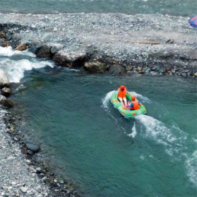翌日,一大早醒來推開窗戶,便被外面的風(fēng)景迷住了。霧氣形成一道道白色的緞帶,披在了群山的肩上腰間。木樓的露天陽臺(tái)上,同事們都在不停的感嘆和拍照,亦有人在閉目養(yǎng)神,感受大自然的氣息。一起吃過早餐,車隊(duì)便駛向白沙河畔,開始了我們期待已久的重頭戲——虹口漂流。虹口漂流被譽(yù)為“西部第一漂”,全程近萬米,且落差明顯,不但能讓人享受“乘風(fēng)破浪,激情飛揚(yáng)”的驚險(xiǎn)樂趣,也能讓人感受到“遠(yuǎn)喧囂而返林、近山野而歸真”的生態(tài)魅力。自由漂的皮艇兩人一艇,經(jīng)過初步的適應(yīng)之后,不同皮艇上的同事們紛紛拿起水瓢,水槍,頭盔等互相潑灑起來,而岸邊的游客也不甘寂寞,拿起各種“武器”參與進(jìn)來。