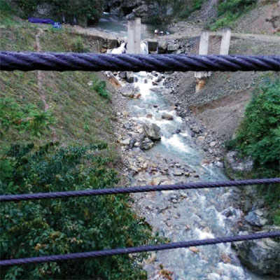 午飯之后是自由活動(dòng)時(shí)間,我們兩車人決定去對(duì)面的大山中逛逛。一路穿過農(nóng)莊果園,竹林菜地。大路的盡頭在半山腰間的亭邊,我們只能下車徒步去欣賞更深層的美景。山間驟雨,并沒有澆滅我們的熱情。漫步在木棧竹徑,青翠片片,竹林清幽,溪水潺潺, 晶瑩剔透。清風(fēng)拂過竹林驚起溪水蕩漾,空氣中都能嗅到濕潤(rùn)的泥土與清新的花香彌漫交融。憩息在亭臺(tái)軒榭,薄霧冥冥,暗香流動(dòng),煙雨蒙蒙,如詩(shī)如畫。細(xì)雨落在山間織起飄渺幕幔,山谷里都能聽到飄來的煙嵐與青翠的竹林清奏天籟。站著煙雨中的吊橋上,詩(shī)意而空靈。在這蒙蒙細(xì)雨之中我體味到純凈清幽的大自然。
