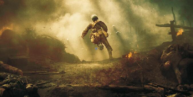 自有聲電影問世以后,好萊塢對實感近乎偏執(zhí)地追求,改寫了全球的觀影標準,也讓好萊塢后來居上,遠超歐洲同行。梅爾·吉布森更是擅長用暴力和血腥表現(xiàn)戰(zhàn)場的實感和戰(zhàn)爭的殘酷:美軍戰(zhàn)列艦406毫米主炮的轟鳴,勃朗寧重機槍的子彈呼嘯,M4坦克的陣陣碾壓,還有迸飛的殘肢,爆裂的人頭……絞肉機般的鋼鋸嶺成了人間地獄,與它極端對立的正是主人公戴斯蒙德·道斯的醫(yī)者仁心。