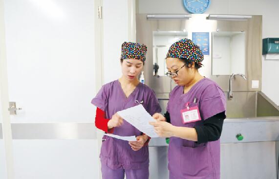 從產(chǎn)房沿著一個旋轉(zhuǎn)樓梯上到三樓就走到了手術(shù)室,手術(shù)室辦公區(qū)域和產(chǎn)房的一樣,寬敞、整潔。經(jīng)常在醫(yī)院看到的護士姐姐都是溫柔漂亮型的,而手術(shù)室穿上手術(shù)衣的護士姐姐卻是帥氣、干練型的。